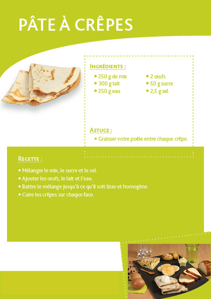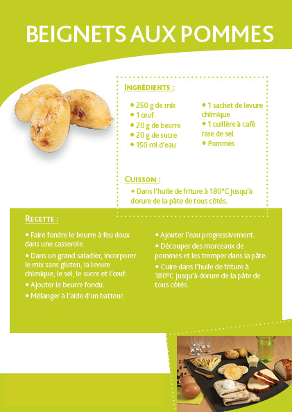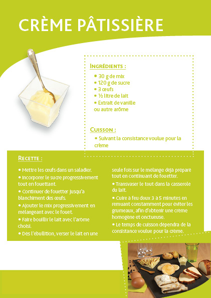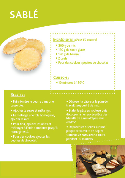 | Sablés | Pâte à Crêpes | Beignets aux pommes | Crème pâtissière | Sauce Béchamel |